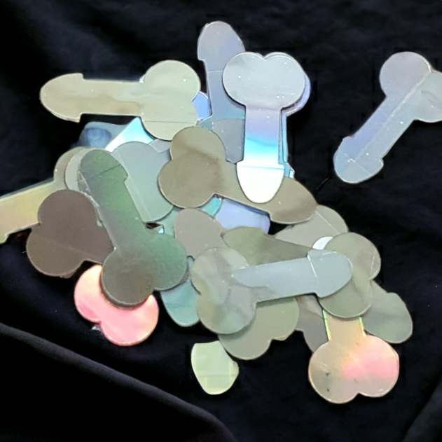 Silver dickies with a holographic surface.